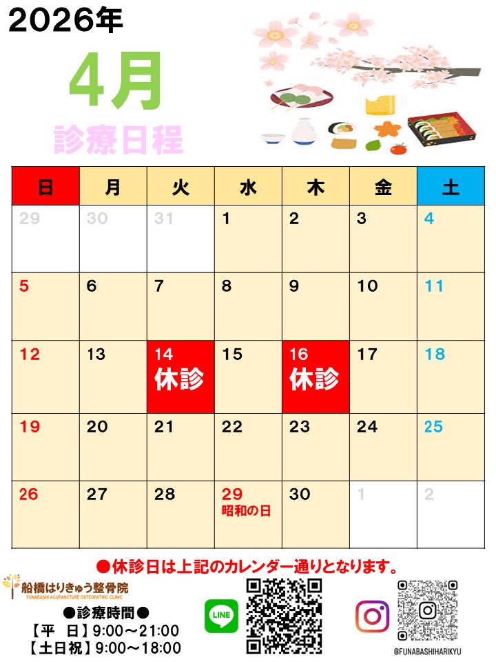 船橋はりきゅう整骨院の4月の診療情報です。